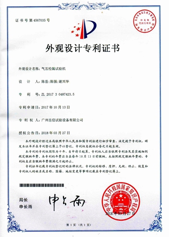 壓力浸水試驗機(jī)-外觀專利證書【岳信公司】